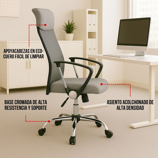 Esta silla ergonómica es la indicada para quienes pasan mucho tiempo frente al escritorio, ya sea por trabajo o estudio, ya que su diseño se adapta a las formas del cuerpo y garantiza un reparto de presiones equilibrado.